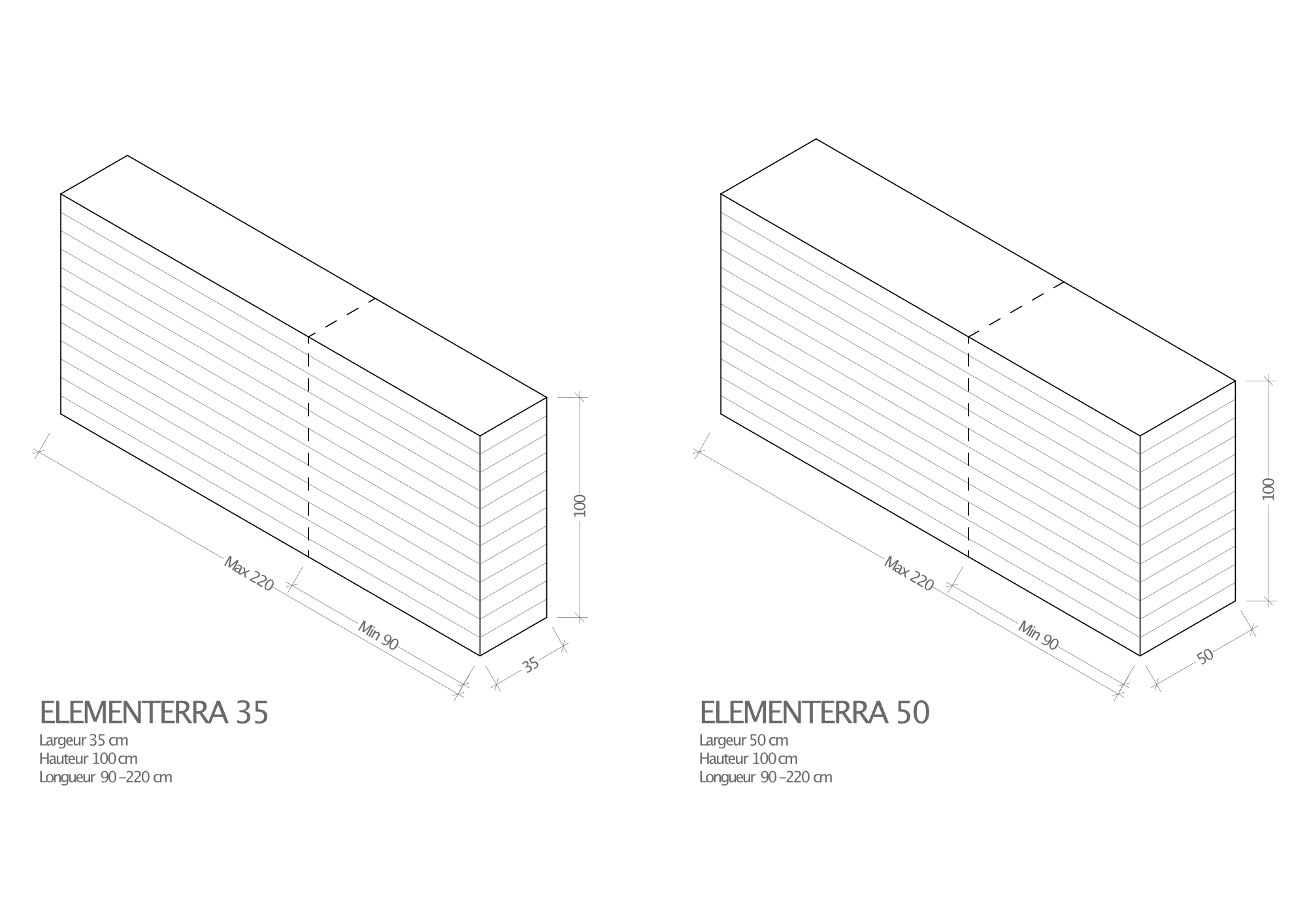Nous proposons deux types d’éléments : ELEMENTERRA 35 et ELEMENTERRA 50.