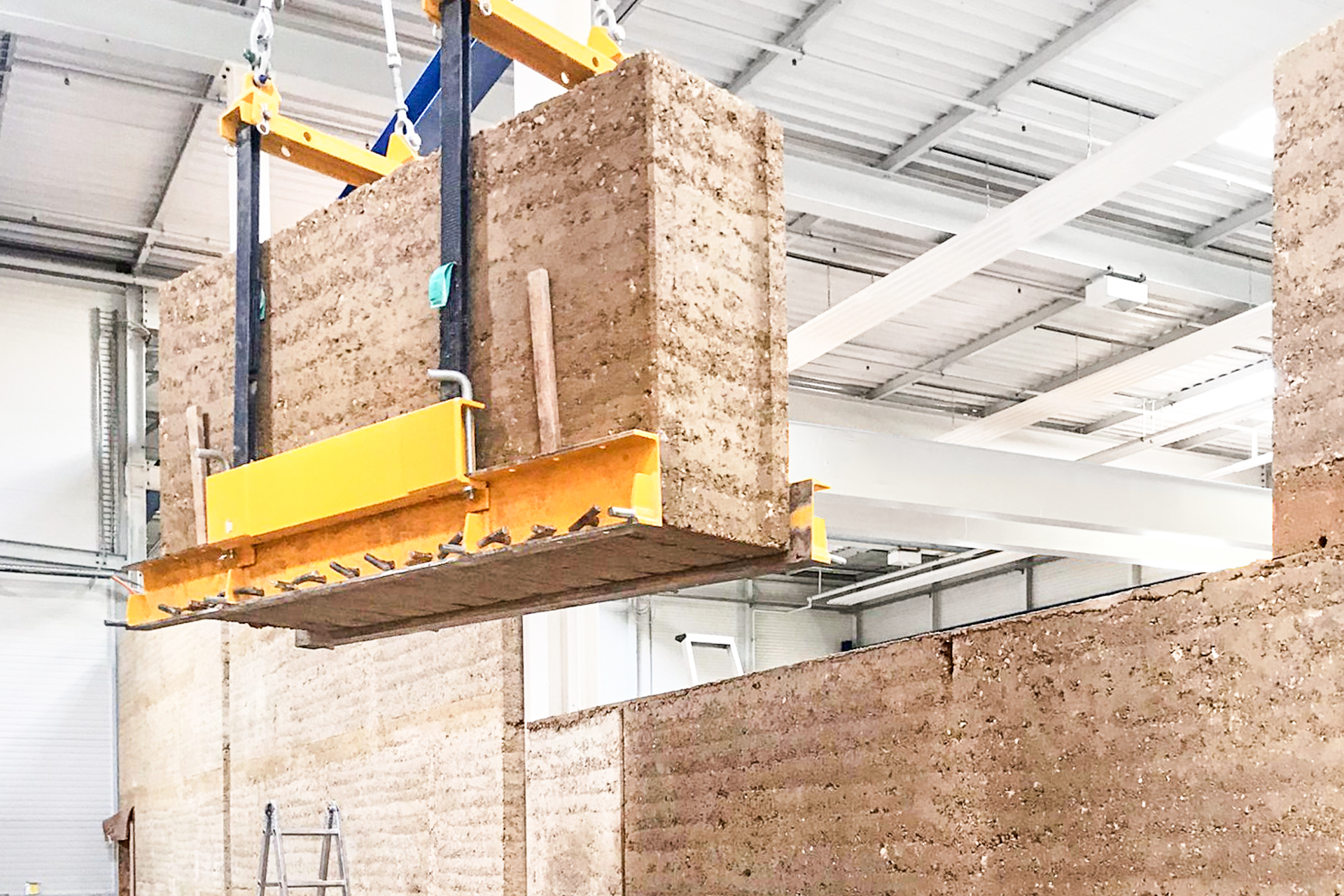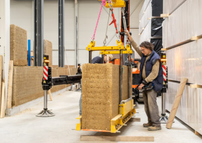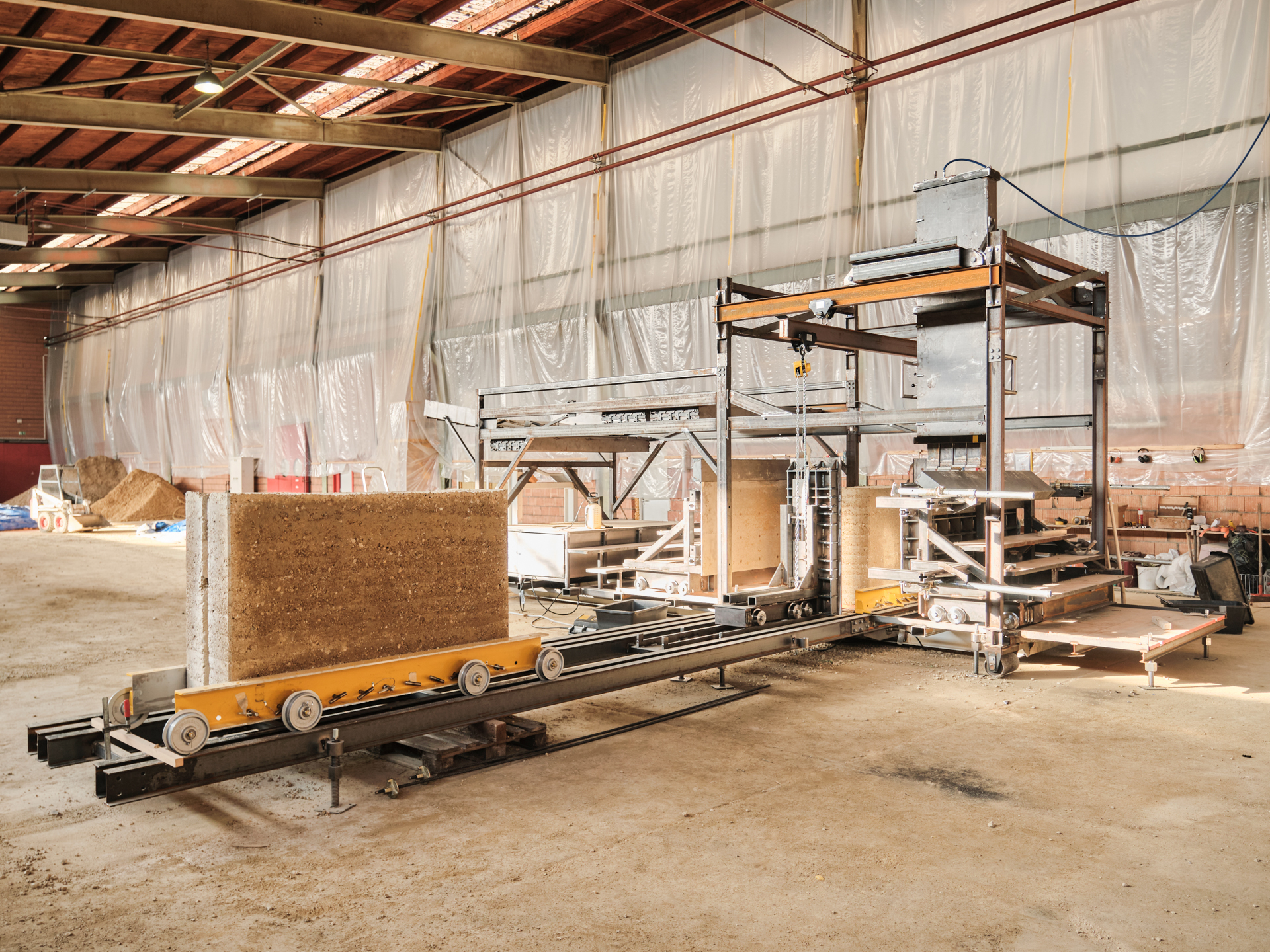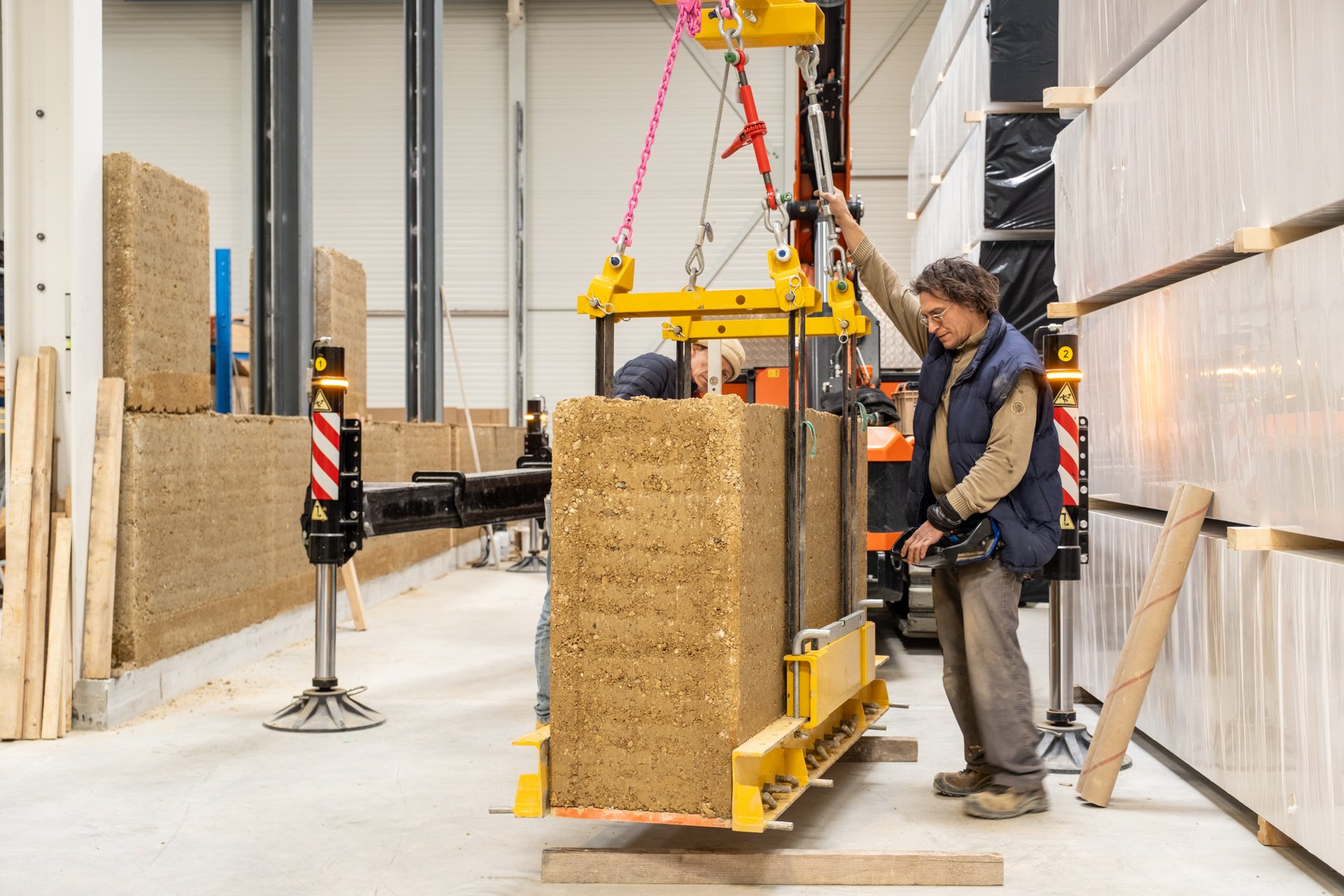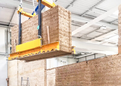 Nous concevons et réalisons des murs en pisé préfabriqué à partir de 100% de terres locales.